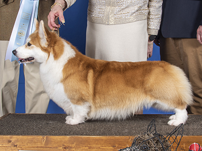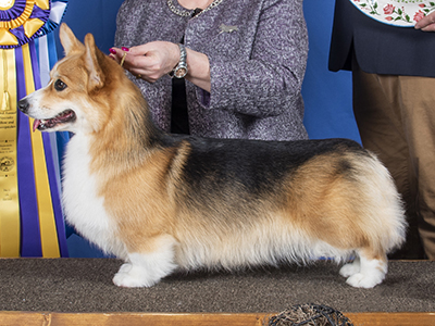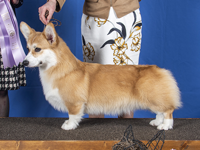 Ch. Double G's Linincorgi Adele's The Eleventh Day x GCh. Double G's Catamarans That Kind Of Girl.